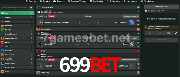 O 699bet oferece uma grande seleção de opções de apostas em e-sports com probabilidades competitivas